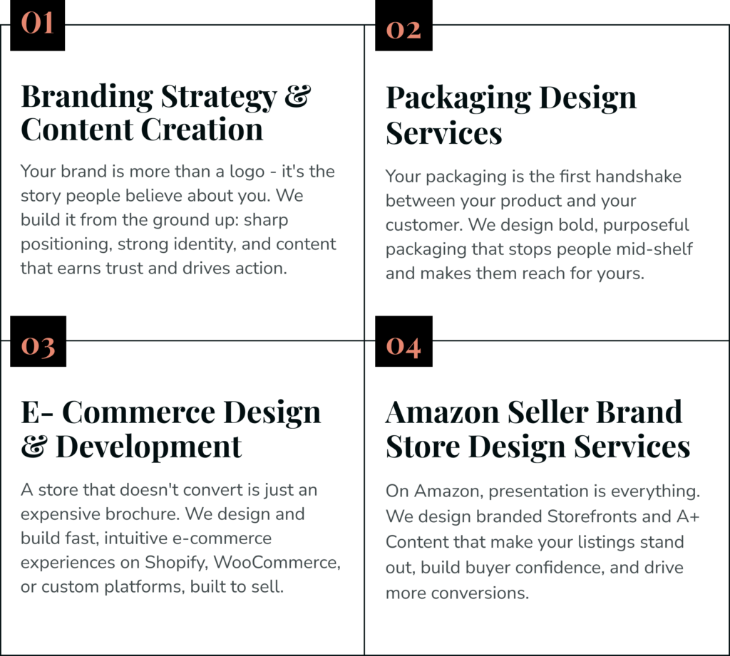 From packaging systems to full-scale brand identities, our work shows how raw ideas become refined brands. Every project is intentional, built to last, not just launch.